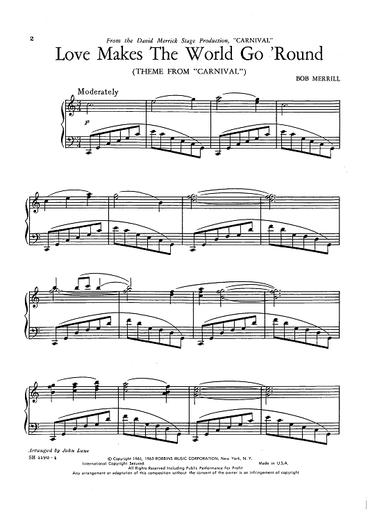 Digital Sheet Music for Love Makes The World Go 'Round (Theme From "Carnival") by Bob Merrill scored for Piano Solo; id:433185