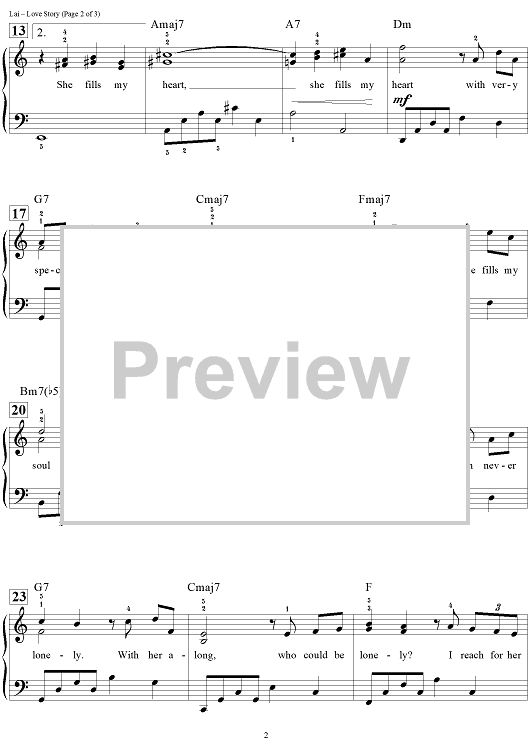 "Love Story (Where Do I Begin?)" Sheet Music by Francis Lai