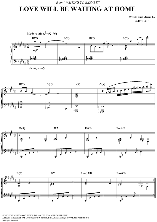 Digital Sheet Music for Love Will Be Waiting at Home by Babyface, For Real scored for Piano/Vocal/Chords; id:276290