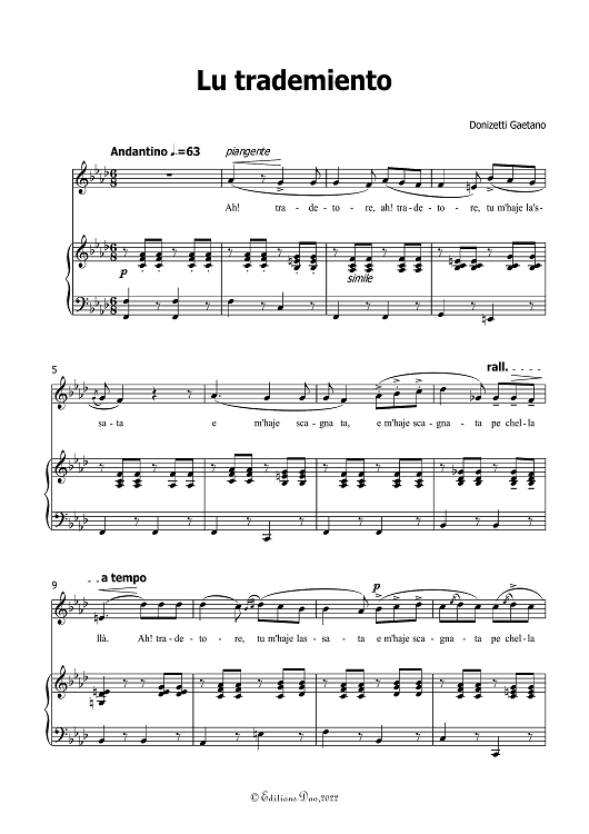 "Lu trademiento" Sheet Music by Gaetano Donizetti