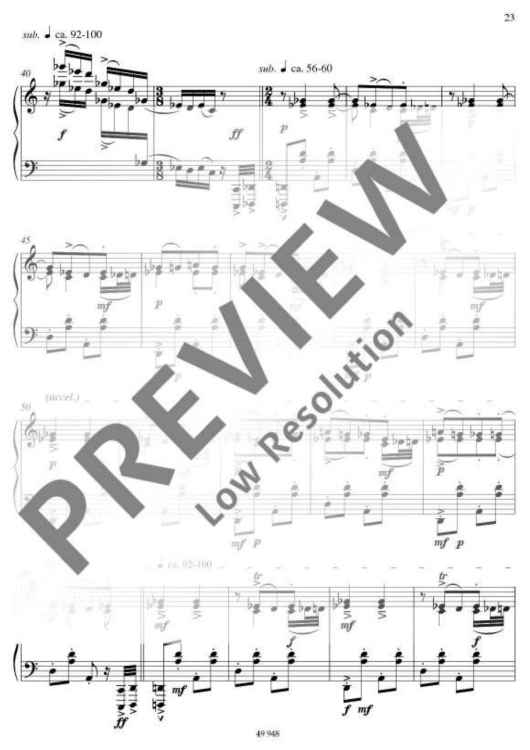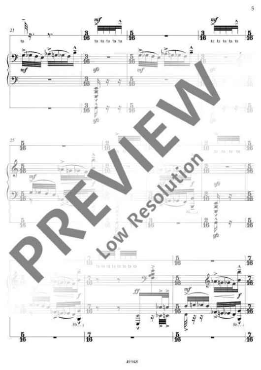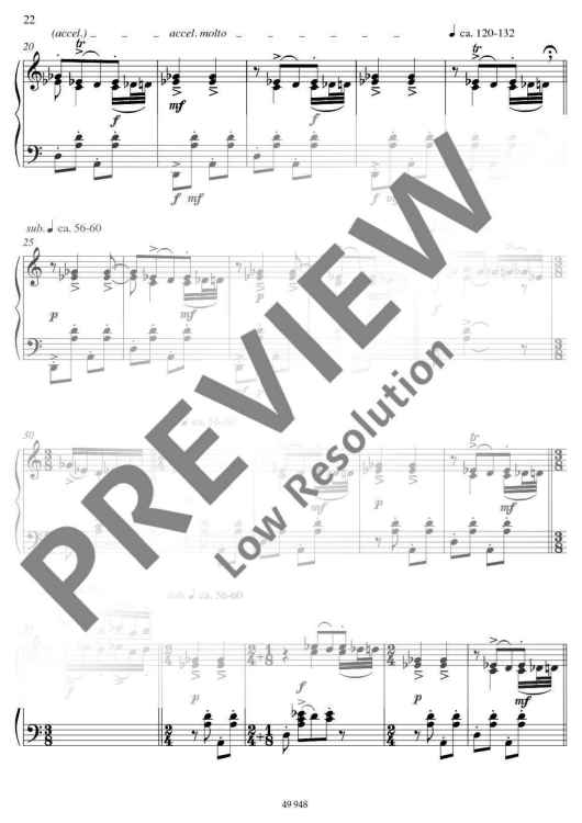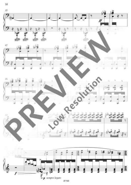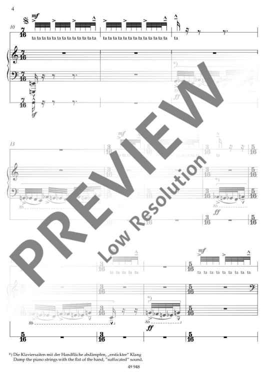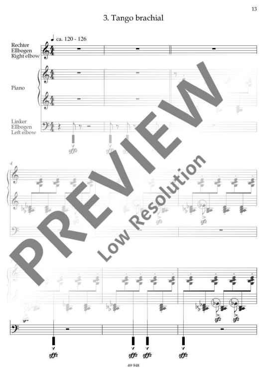 With their wide range of differing moods these pieces concentrate less on the typical rhythm of the Tango but convey something of the demonic forces inherent in this dance. Unusual playing techniques like plucked strings, clusters from wrist to elbow and the use of the voice further emphasise the composer's 'sinister' intentions.