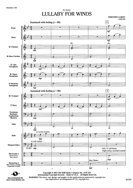 "Lullaby for Winds - Score" Sheet Music by Timothy Loest