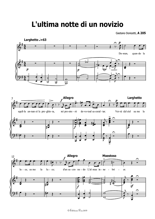 "L'ultima notte di un novizio" A 205 in G Major by Gaetano Donizetti