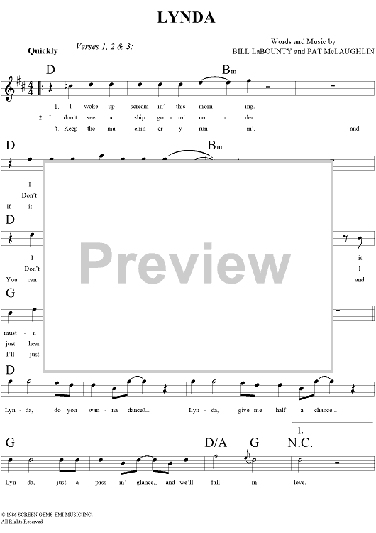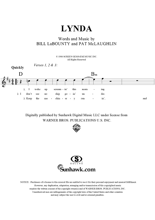 Digital Sheet Music for Lynda by Steve Wariner, Bill LaBounty, Pat McLaughlin scored for Lead Sheet; id:250380
