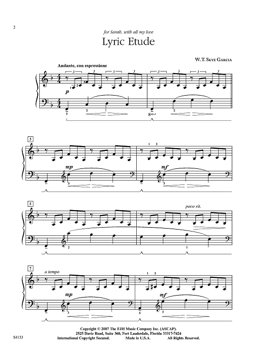 "Lyric Etude" Sheet Music by W. T. Skye Garcia