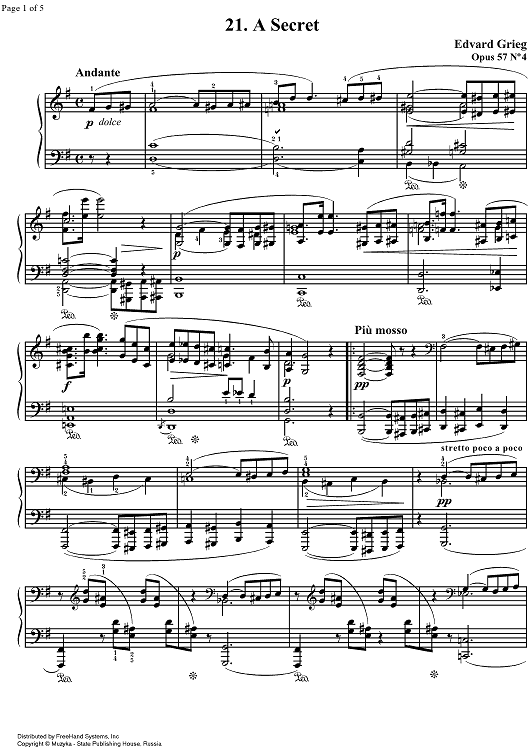 Digital Sheet Music for Lyrical Pieces Op.57 No. 4 - Geheimnis by , Edvard Grieg scored for Piano Solo; id:322640