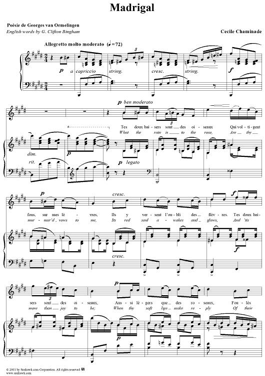 Digital Sheet Music for Madrigal by Cécile Chaminade, Georges van Ormelingen scored for Voice/Piano; id:273886