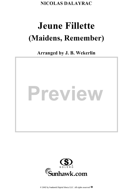 "Maidens, Remember (Jeune Fillette)" Sheet Music by Nicolas Dalayrac