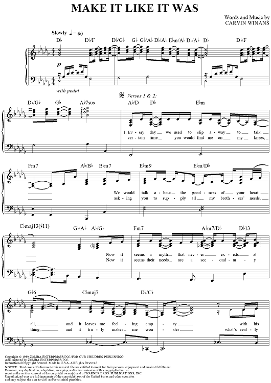 Digital Sheet Music for Make It Like It Was by Carvin Winans scored for Piano/Vocal/Chords; id:240787