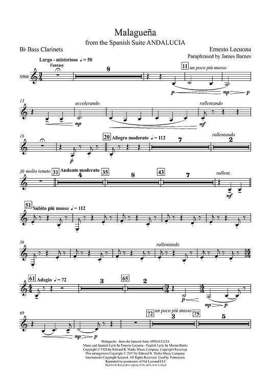 Digital Sheet Music for Malaguena: from the Spanish Suite ANDALUCIA - Bb Bass Clarinet by Ernesto Lecuona, James Barnes scored for Concert Band; id:504695