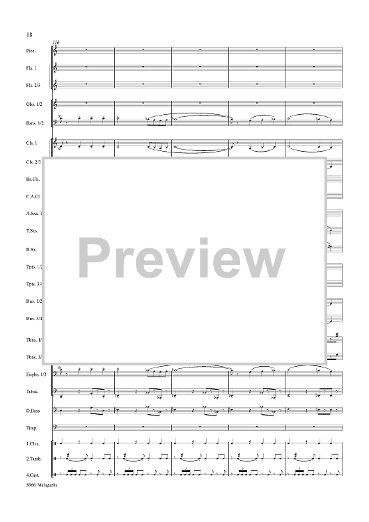 Digital Sheet Music for Malaguena: from the Spanish Suite ANDALUCIA - Full Score by Ernesto Lecuona, James Barnes scored for Concert Band; id:504685