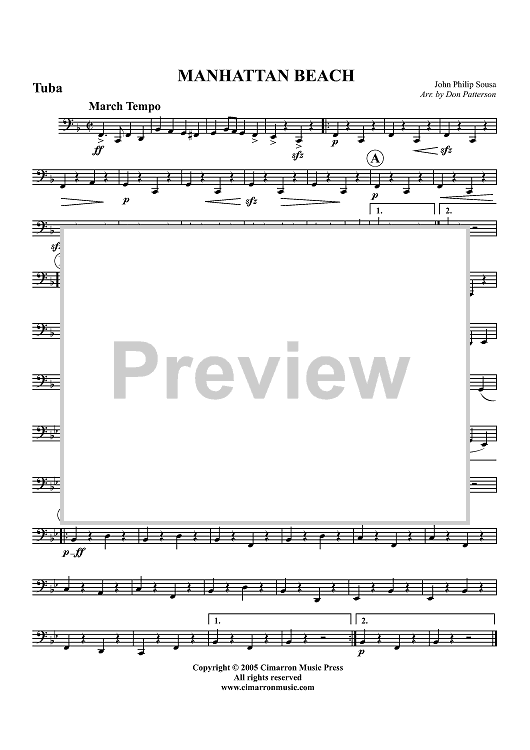 Digital Sheet Music for Manhattan Beach - Tuba by John Philip Sousa, Donald Patterson scored for Brass Quintet; id:317446