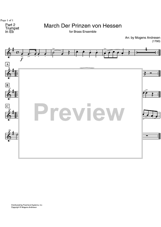 Digital Sheet Music for March Der Prinzen von Hessen - Trumpet in E-flat by Unknown Writer, Mogens Andresen scored for Brass Ensemble; id:328298