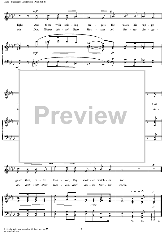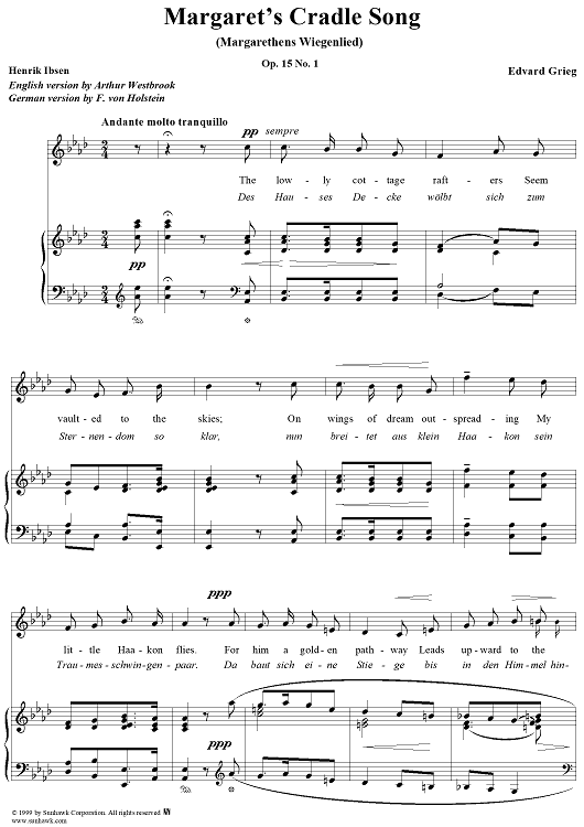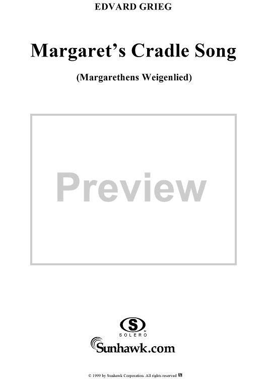 Digital Sheet Music for Margaret's Cradle Song by Edvard Grieg, Henrik Ibsen scored for Voice/Piano; id:113175