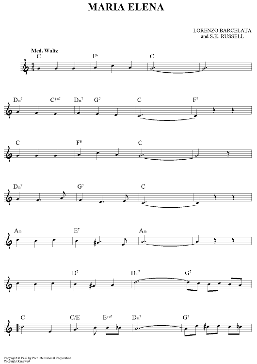 "Maria Elena" Sheet Music by Lorenzo Barcelata