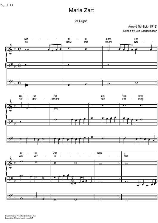 Digital Sheet Music for Maria Zart by Arnold Schlick, Eilif Zachariassen scored for Voice/Organ; id:322139