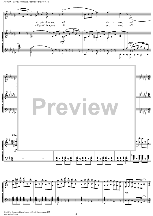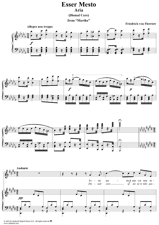Digital Sheet Music for Martha, "Esser Mesto" (Dismal Care) by Friedrich von Flotow scored for Voice/Piano; id:253579