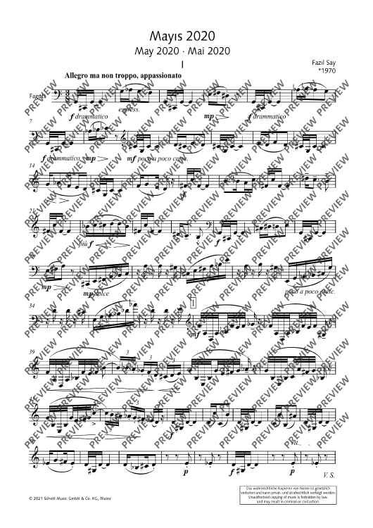 Digital Sheet Music for Mayis 2020 by Fazil Say scored for Bassoon; id:496138