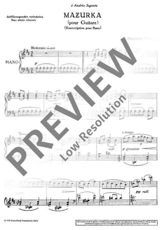 Digital Sheet Music for Mazurka by Alexandre Tansman scored for Piano; id:472564