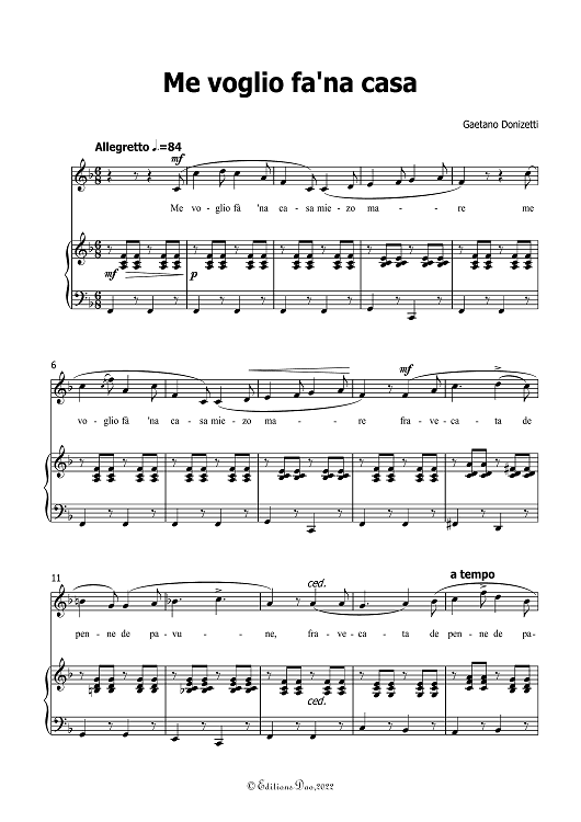 "Me voglio fa'na casa" Sheet Music by Gaetano Donizetti