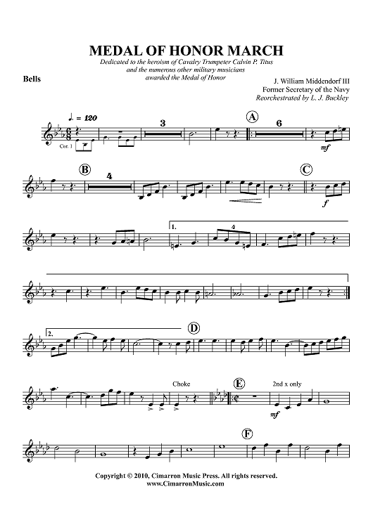 Digital Sheet Music for Medal of Honor March - Bells by Lewis J. Buckley, J. William Middendorf III scored for Concert Band; id:417411