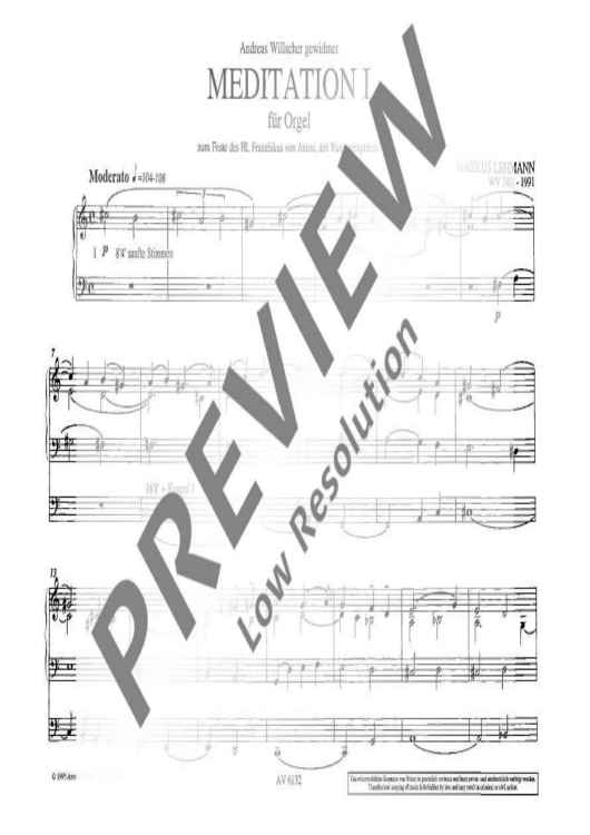 Digital Sheet Music for Meditation I by Markus Lehmann scored for Organ; id:488986