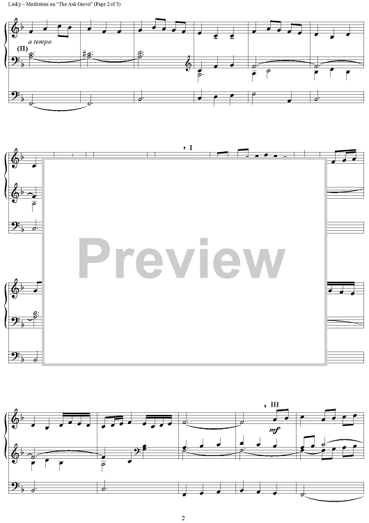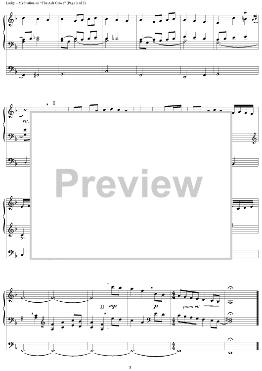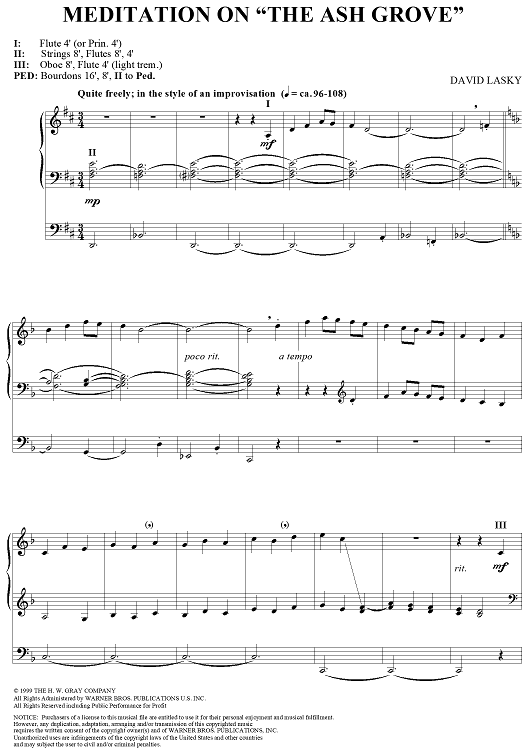 Digital Sheet Music for Meditation on "The Ash Grove" by David Lasky scored for Organ Solo; id:250218