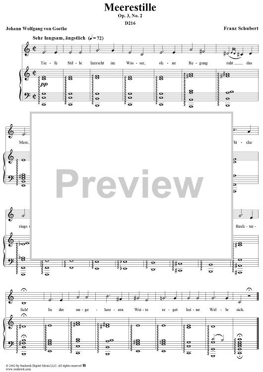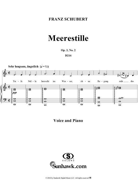 Digital Sheet Music for Meerestille II, Op.3, No.2, D216 by Franz Schubert scored for Voice/Piano; id:256750