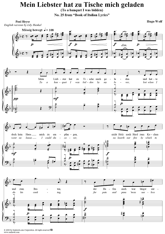 Digital Sheet Music for Mein Liebster hat zu Tische mich geladen by Hugo Wolf, Paul Heyse scored for Voice/Piano; id:263380