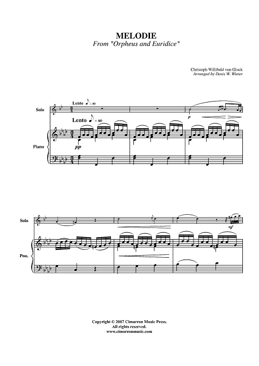 Digital Sheet Music for Melodie from "Orpheus and Euridice" - Piano Score by Denis Winter, Christoph Willibald Glück scored for Trumpet/Piano; id:364528