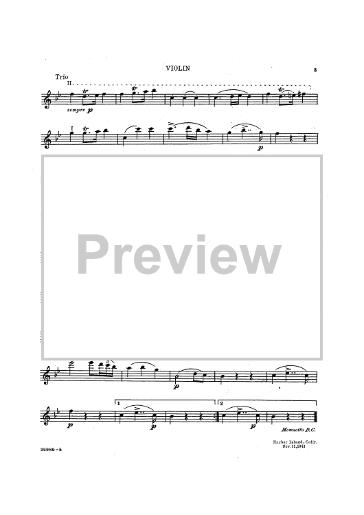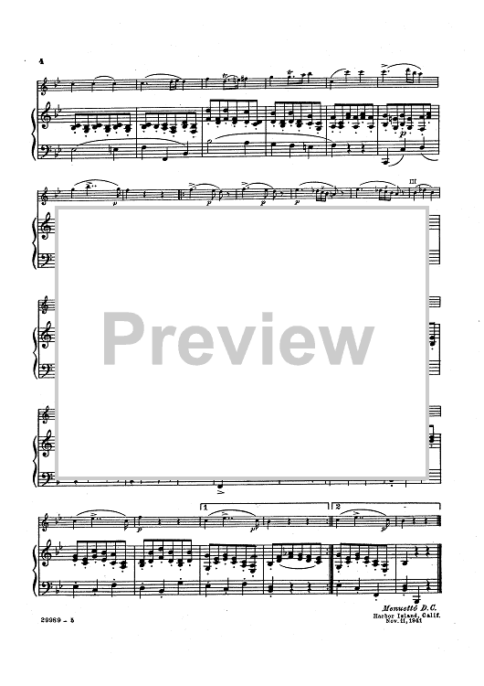 "Menuetto and Trio - from String Quartet No. 17 in Bb Major, K458" Sheet Music by Wolfgang Amadeus Mozart
