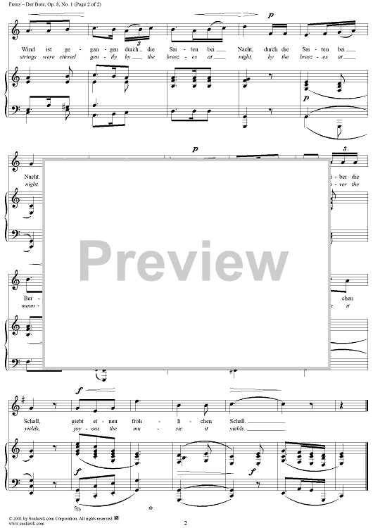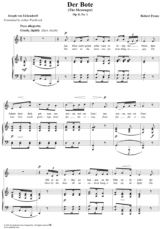 Digital Sheet Music for Messenger, The (Der Bate) by Joseph von Eichendorff, Robert Franz scored for Voice/Piano; id:269556
