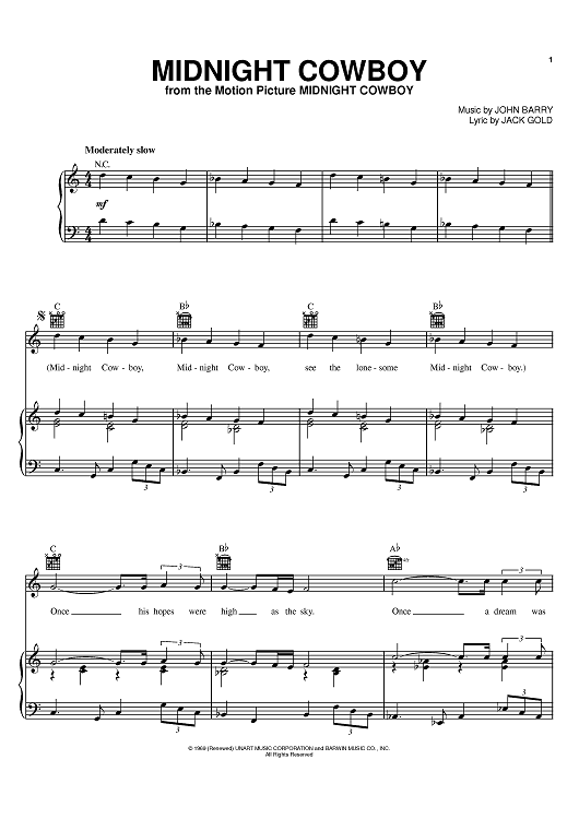 Digital Sheet Music for Midnight Cowboy by John Barry, Jack Gold scored for Piano/Vocal/Chords; id:374999