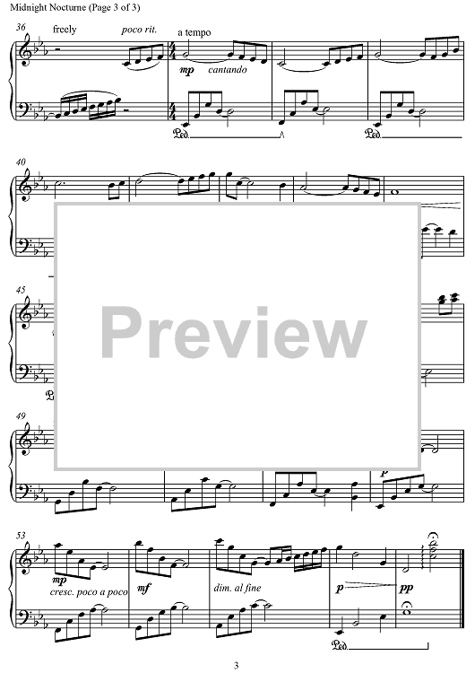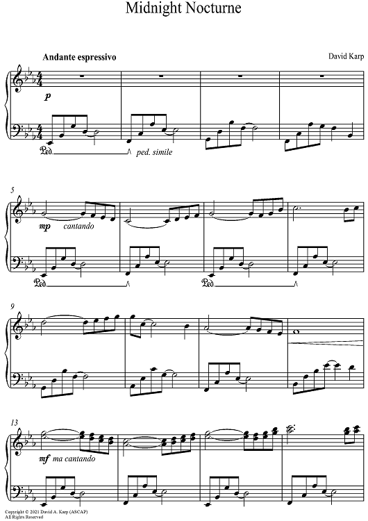 Digital Sheet Music for Midnight Nocturne by David Karp scored for Piano Solo; id:497179