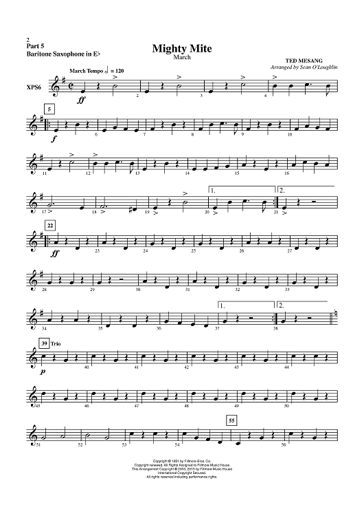 Digital Sheet Music for Mighty Mite (March) - Part 5 Baritone Sax by Sean O'Loughlin, Ted Mesang scored for Concert Band; id:436235