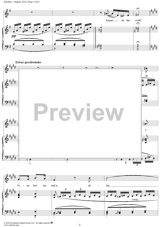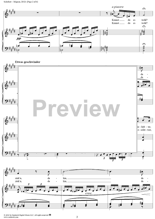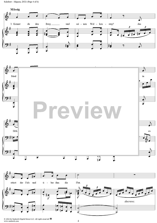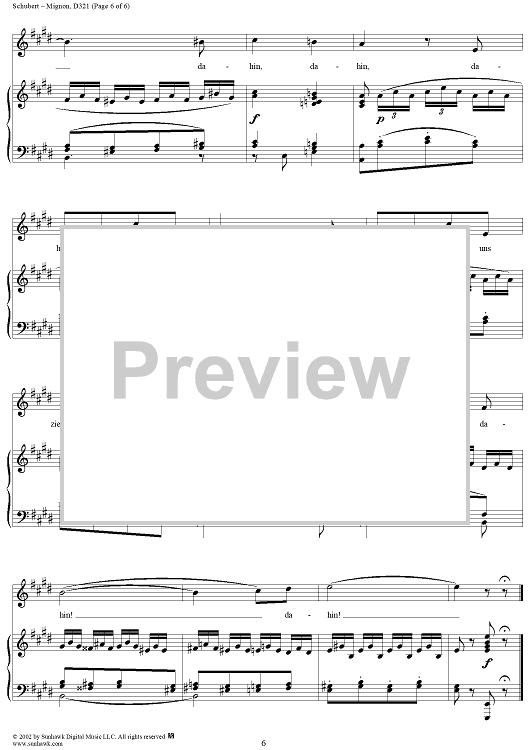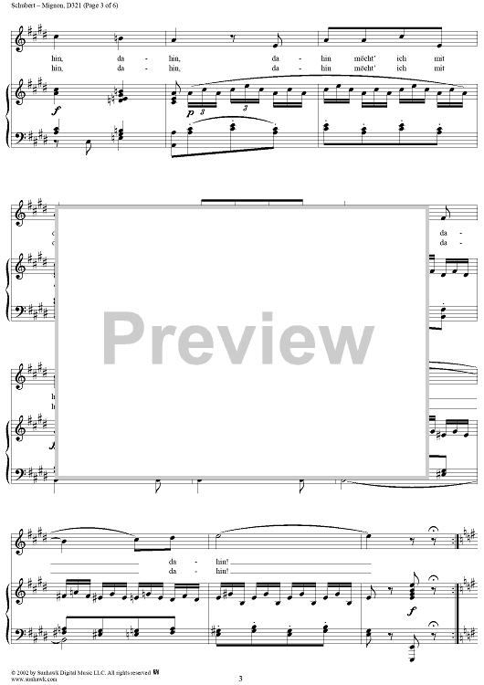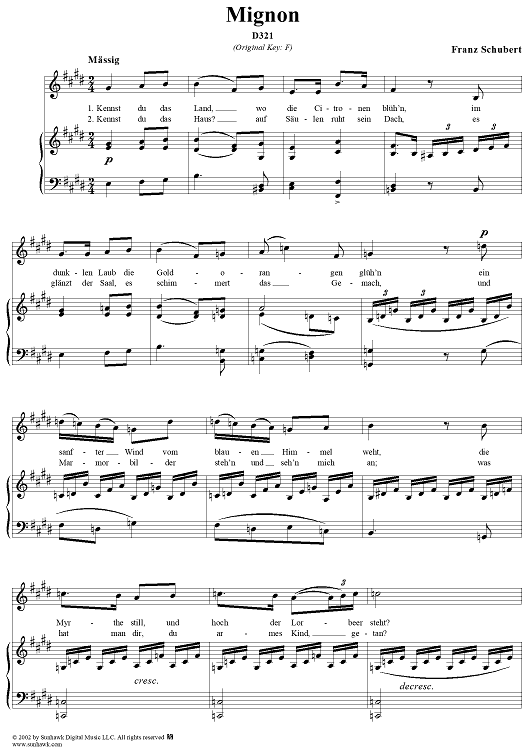 Digital Sheet Music for Mignon, D321 by Franz Schubert scored for Voice/Piano; id:256754