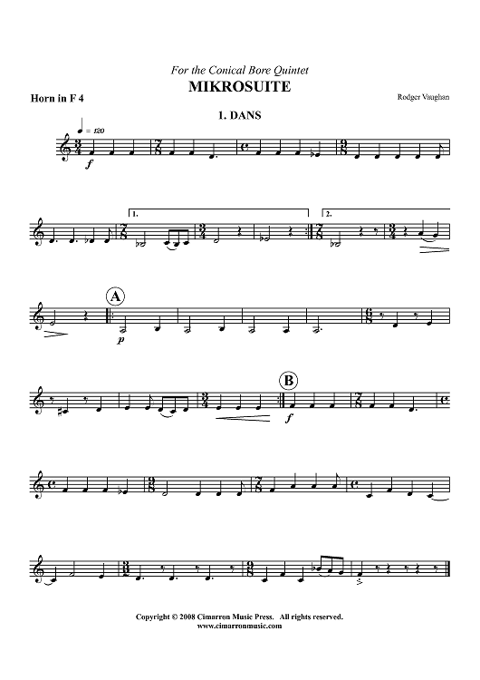 Digital Sheet Music for Mikrosuite - Horn in F 4 by Rodger Vaughan scored for Brass Ensemble; id:417307