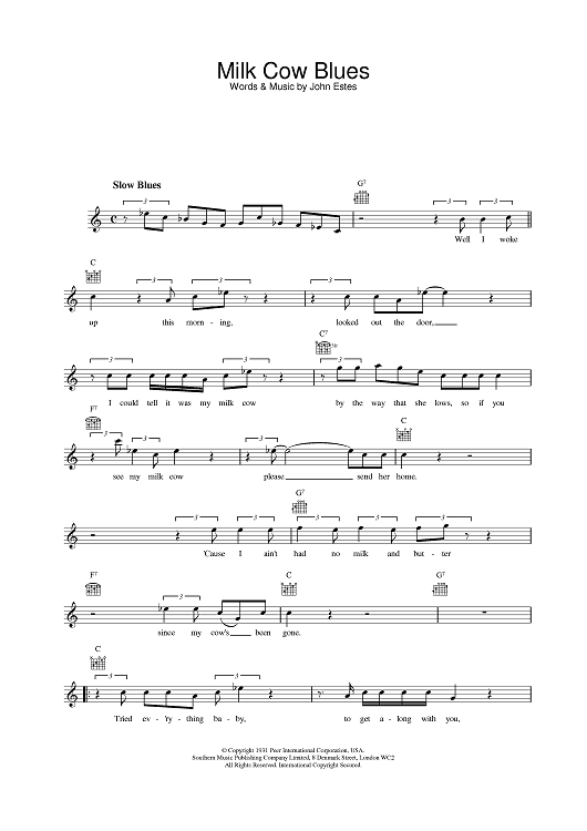 Digital Sheet Music for Milk Cow Blues by Eddie Cochran scored for Lead Sheet; id:376174