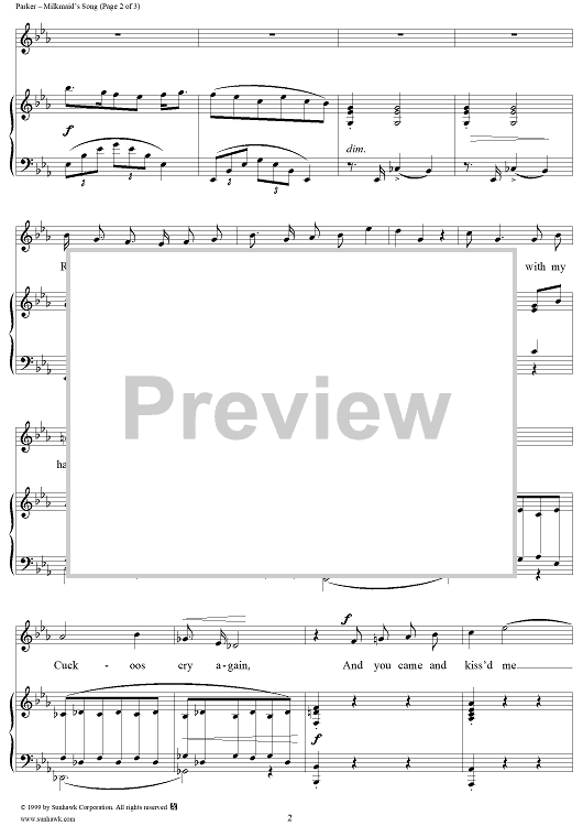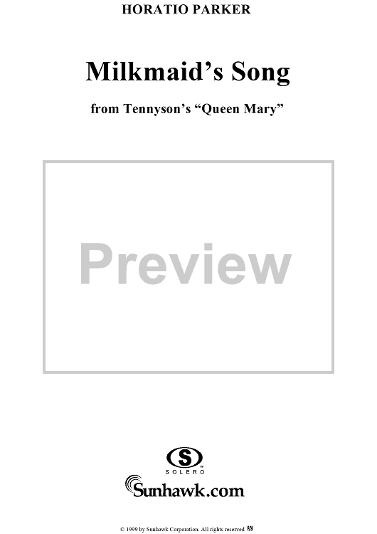 Digital Sheet Music for Milkmaid's Song by Horatio Parker scored for Voice/Piano; id:254135