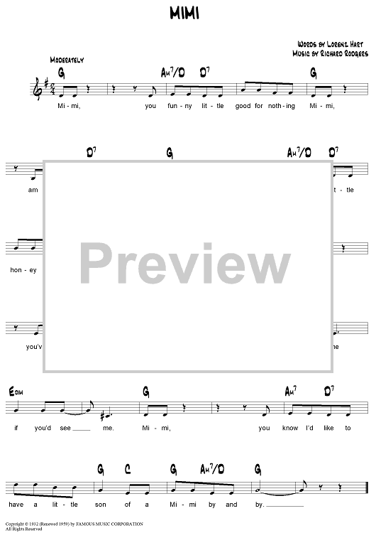 Digital Sheet Music for Mimi by Richard Rodgers, Lorenz Hart scored for Lead Sheet; id:290018