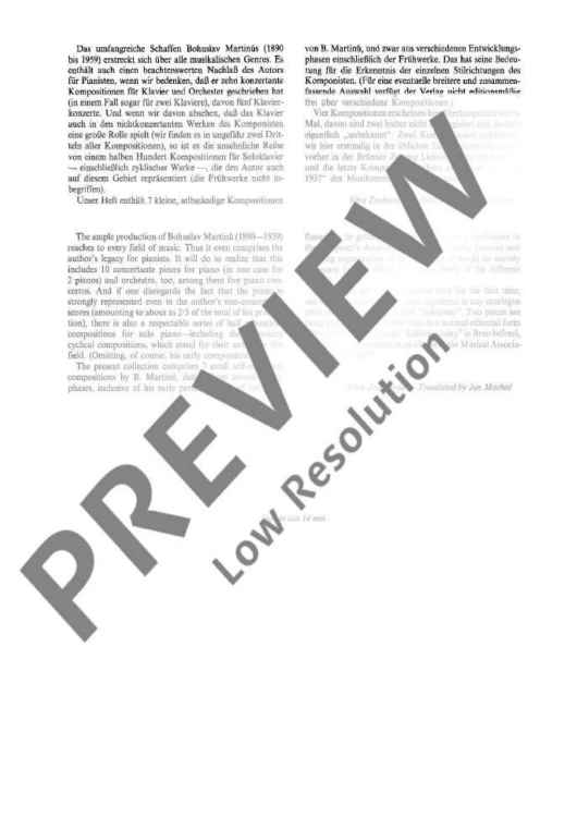 "Minor Piano Pieces" Sheet Music by Bohuslav Martinu