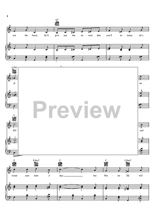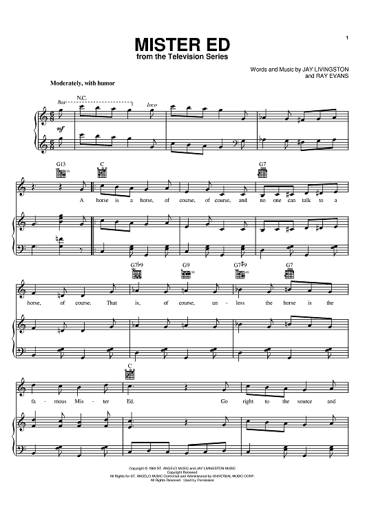 Digital Sheet Music for Mister Ed by Jay Livingston, Ray Evans scored for Piano/Vocal/Chords; id:375143