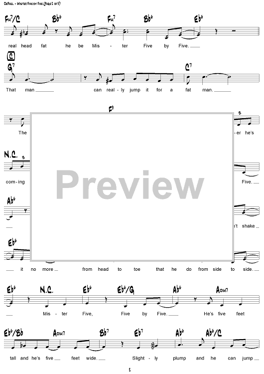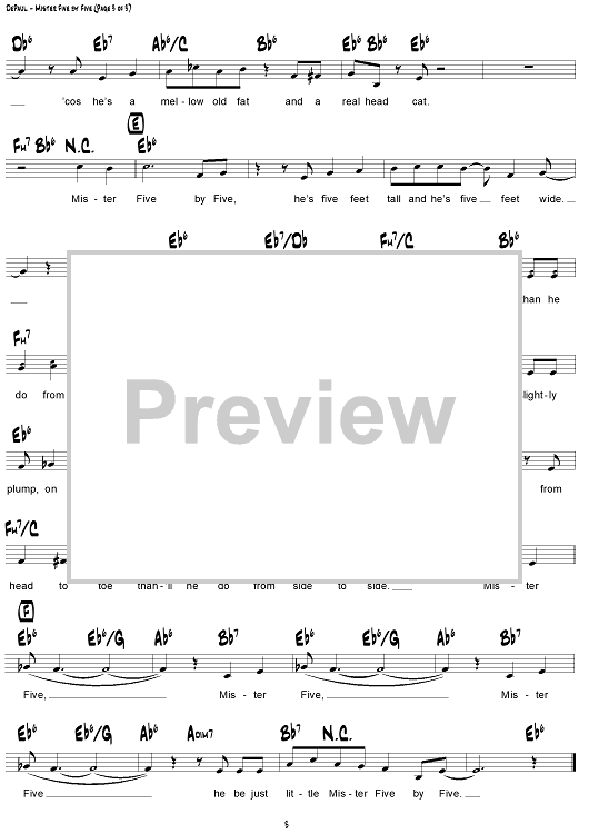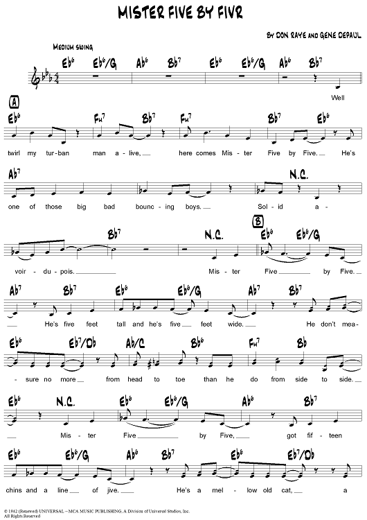 Digital Sheet Music for Mister Five by Five by Don Raye, Gene De Paul scored for Lead Sheet; id:307965