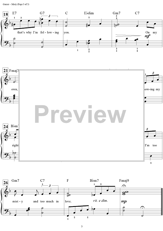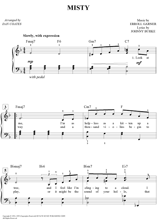 Digital Sheet Music for Misty by Dan Coates, Erroll Garner, Johnny Burke scored for Easy Piano/Vocal/Chords; id:450629