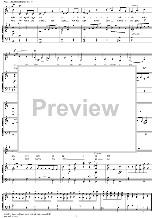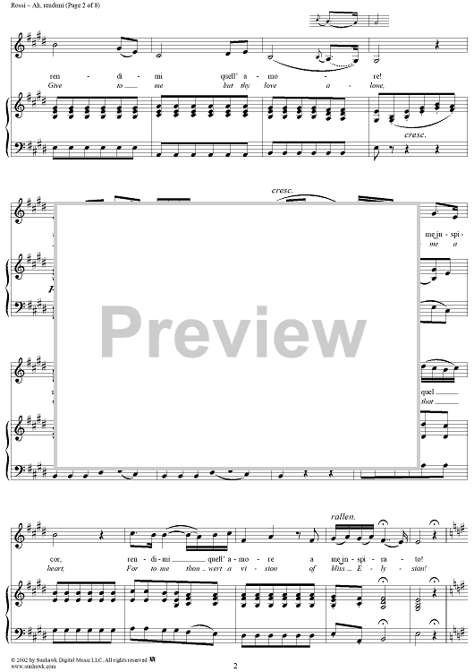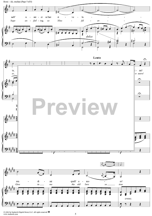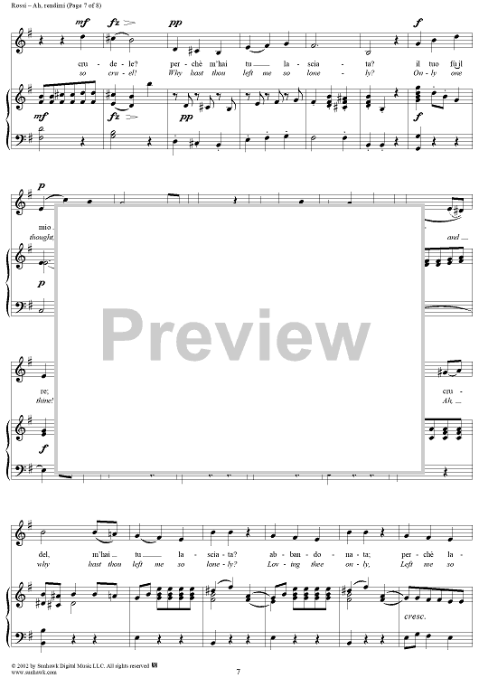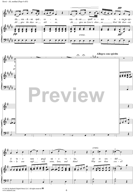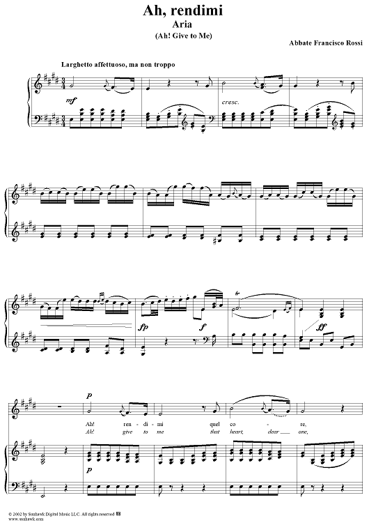 Digital Sheet Music for Mitrane, "Ah, rendimi" (Ah, give to me) by Abbate Francisco Rossi scored for Voice/Piano; id:253586