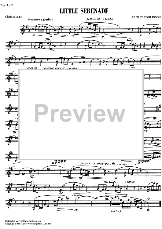 "Moderate 2/1 - Little Serenade - Clarinet" Sheet Music by Ernest Tomlinson