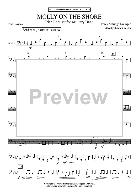 Digital Sheet Music for Molly on the Shore - Bassoon 2 by Percy Grainger, R. Mark Rogers scored for Concert Band; id:503080