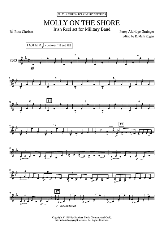 Digital Sheet Music for Molly on the Shore - Bb Bass Clarinet by Percy Grainger, R. Mark Rogers scored for Concert Band; id:503076