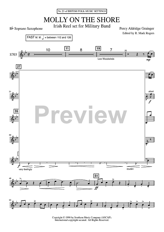 Digital Sheet Music for Molly on the Shore - Bb Soprano Sax by Percy Grainger, R. Mark Rogers scored for Concert Band; id:503083