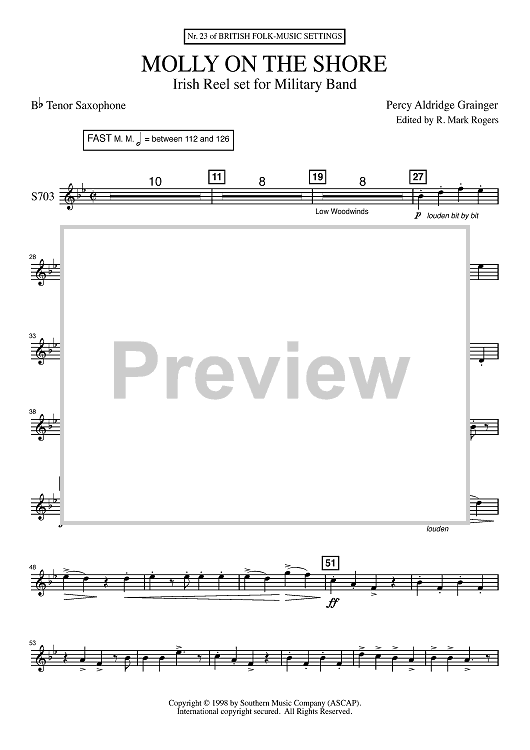 Digital Sheet Music for Molly on the Shore - Bb Tenor Sax by Percy Grainger, R. Mark Rogers scored for Concert Band; id:503086